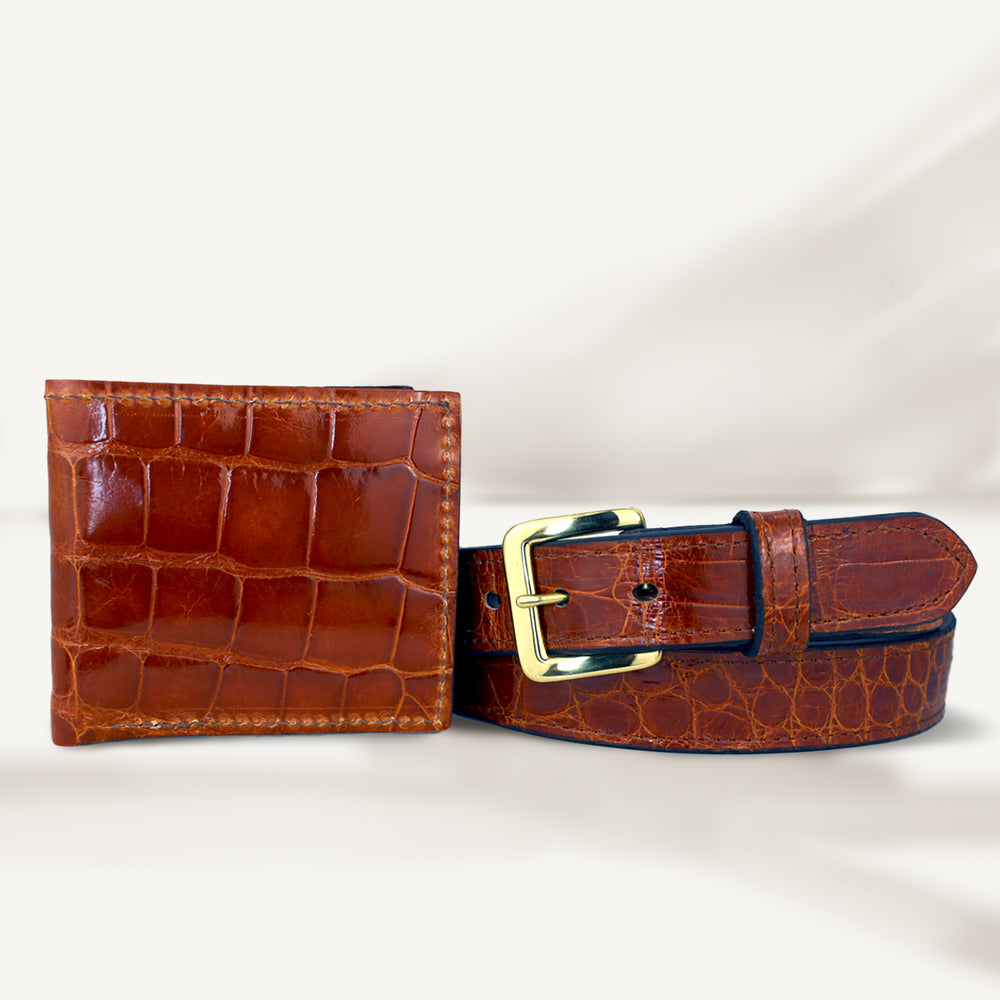 Our belts are handcrafted from the highest quality alligator skins available. These gator leather belts are made to order and crafted with our years of leather-working experience. This particular belt is tanned to bring out a rich rust orange look to the alligator skin.