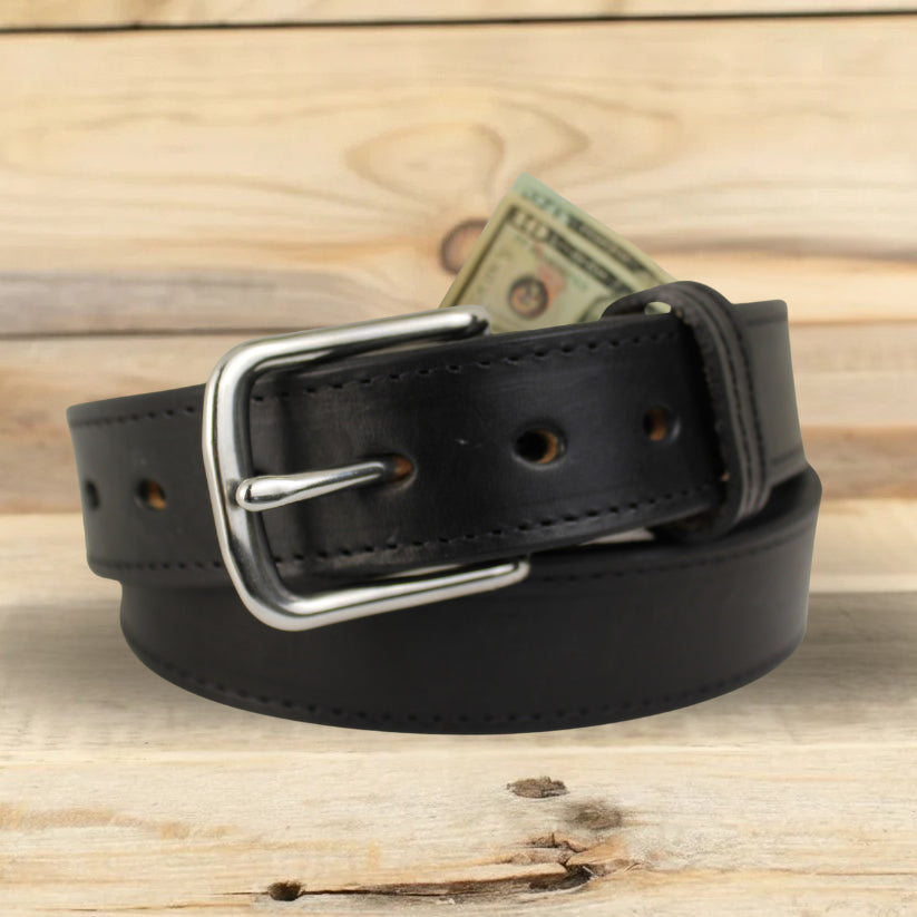 This English Bridle leather isn't your ordinary belt.Β It has our special zippered money pocket on the back to hide cash and documents from would be thieves!