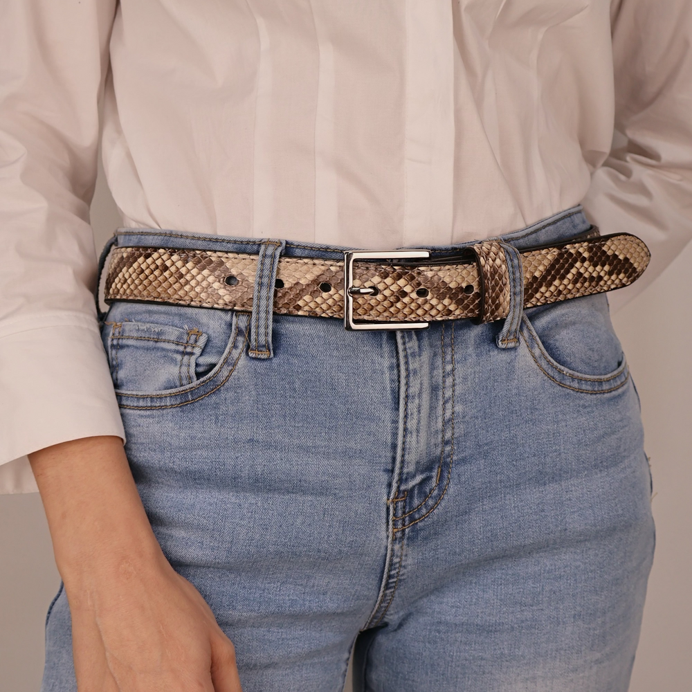 Women’s Python Snakeskin Leather Belt – 1.25”