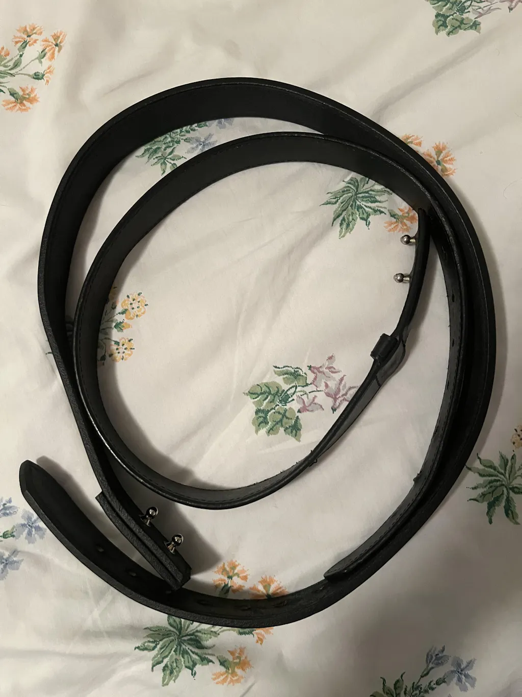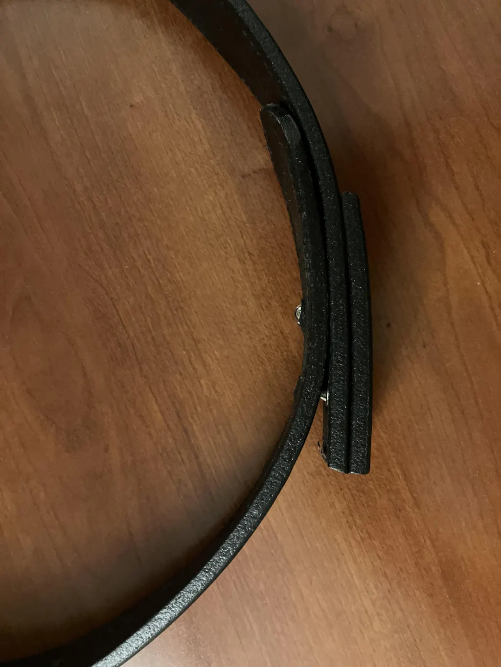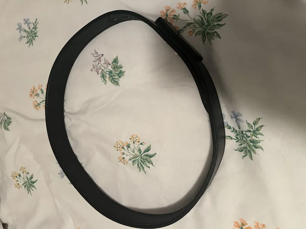 This belt is 1.5" wide and made from thick American made leather. Comes with 7 large oval holes spaced 1 inch apart. This isn't glued or bonded like cheap Chinese imports and will never separate.